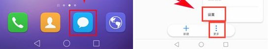 1、首先我們打開手機【信息】應(yīng)用,進入信息后點擊右下角的【更多】圖標(biāo),再點擊【設(shè)置】。