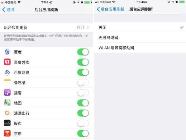 進入設置-通用-后臺應用刷新我們可以關(guān)閉不必要的后臺應用刷新程序,或者完全關(guān)閉后臺應用刷新功能。