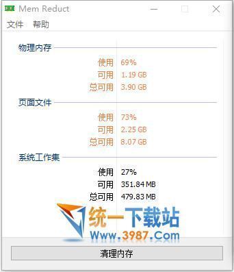 Mem Reduct是個迷你的內存監視和清理軟件,號稱可使應用程序的內存使用量下降25%左右。已漢化成中文使用了下,效果不錯,感覺比魔方里面的內存整理強。